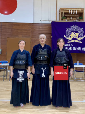 Sur la photo, on retrouve Nolwenn à droit aux côtés de Shinsei Shimojima Sensei, maître japonais, et d’Alena, lors de ce stage exceptionnel.